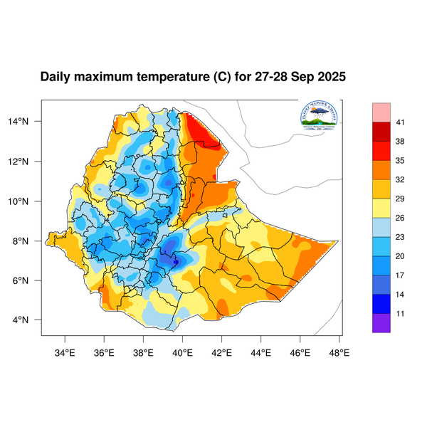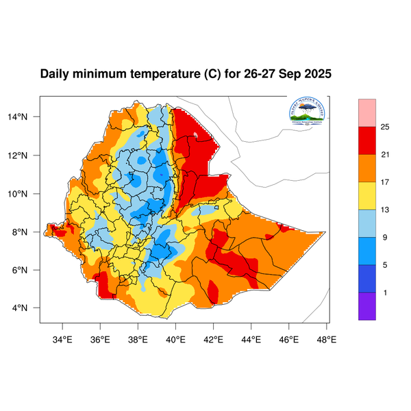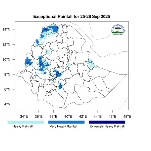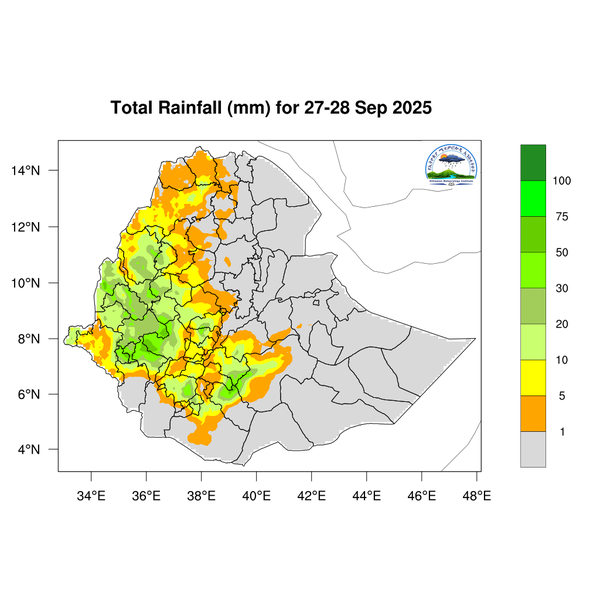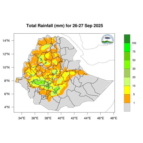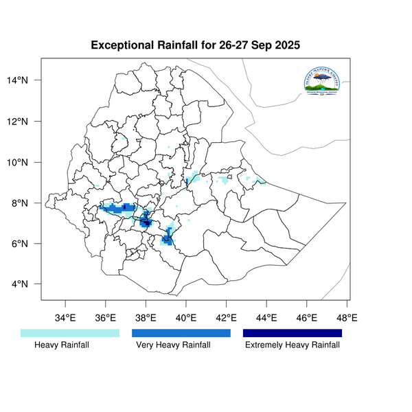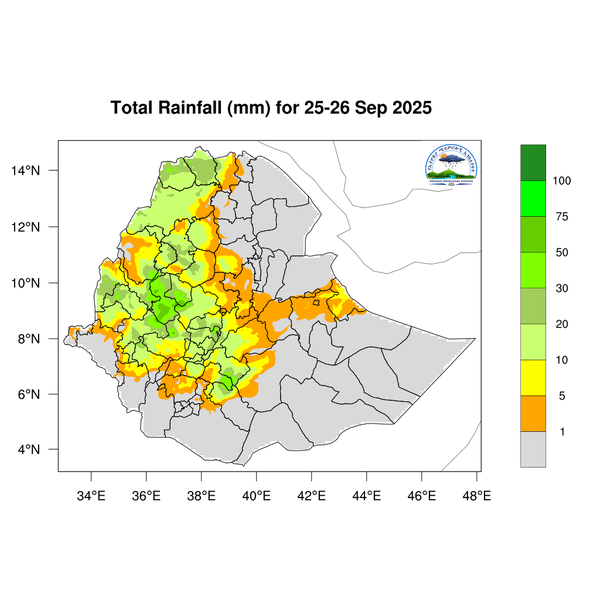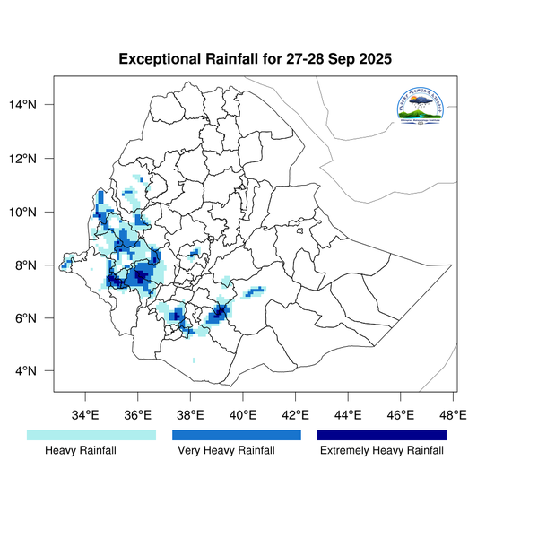 Light to heavy rainfall is expected over Tigray, southern Afar, Amhara, Benishangul Gumuz, Oromia, Southwest Ethiopia, northern portions of South Ethiopia, Central Ethiopia, Sidama, Dire Dawa, Harari and northern Somali regions.