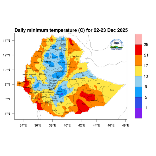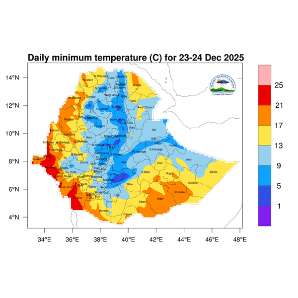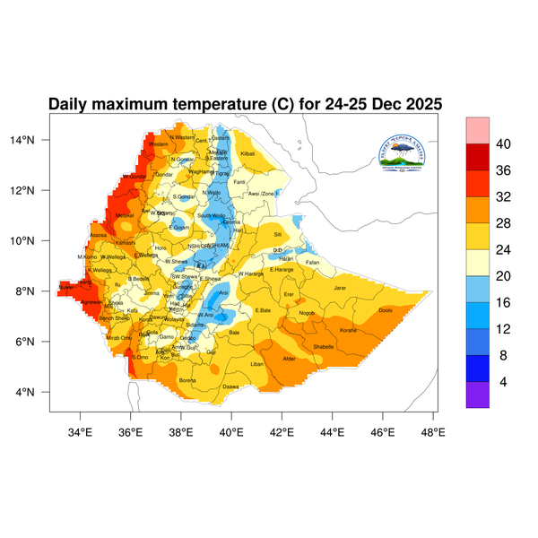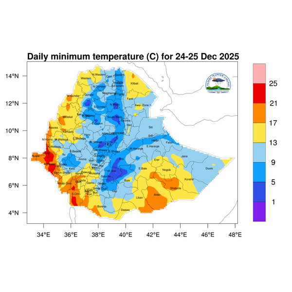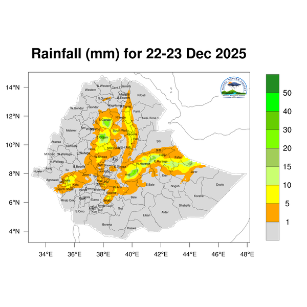 Light to moderate rainfall is expected over eastern and central Amhara, eastern and central Oromia, northern Somali, southwest Ethiopia, and the central region of Ethiopia.