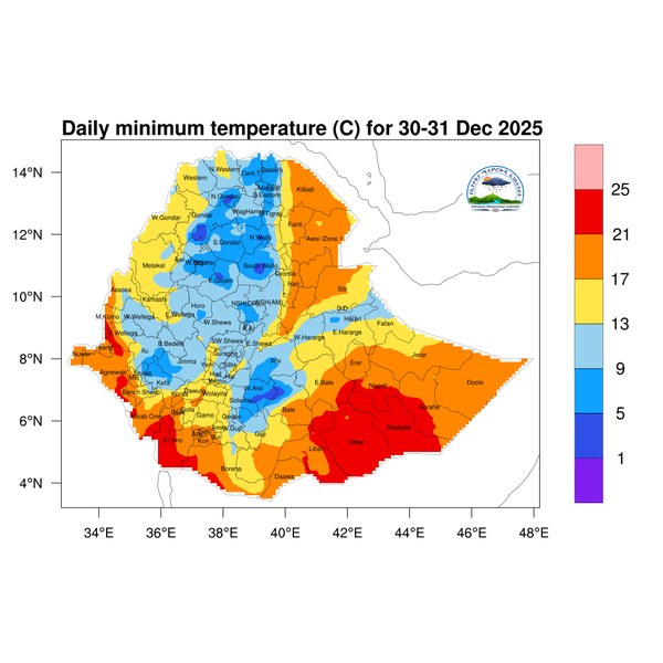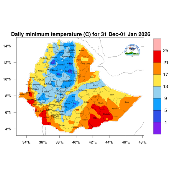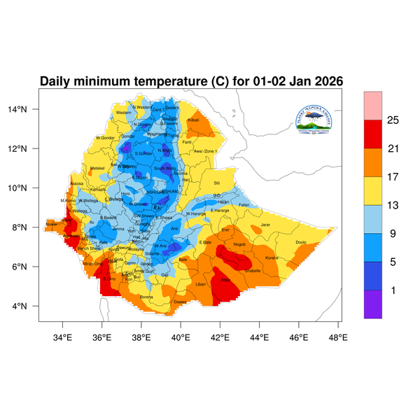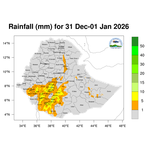 Light to moderate rainfall is expected in parts of southwest Ethiopia, central Ethiopia, the Southern Ethiopia Region, Sidama, eastern Amhara, and the southern, central, and southern highlands of Oromia.