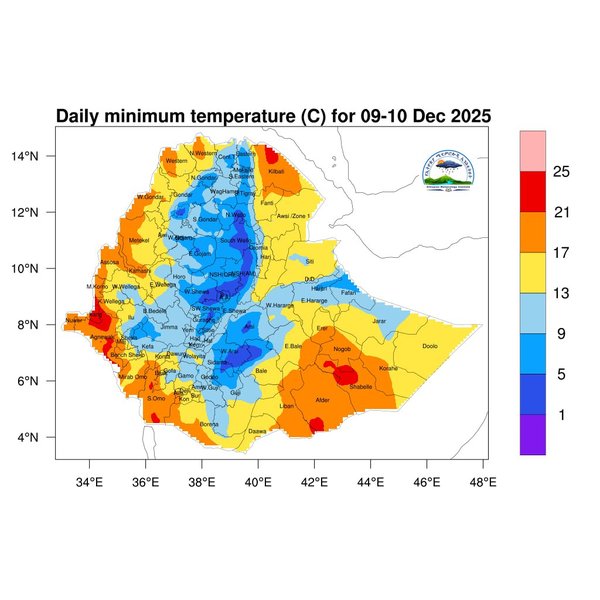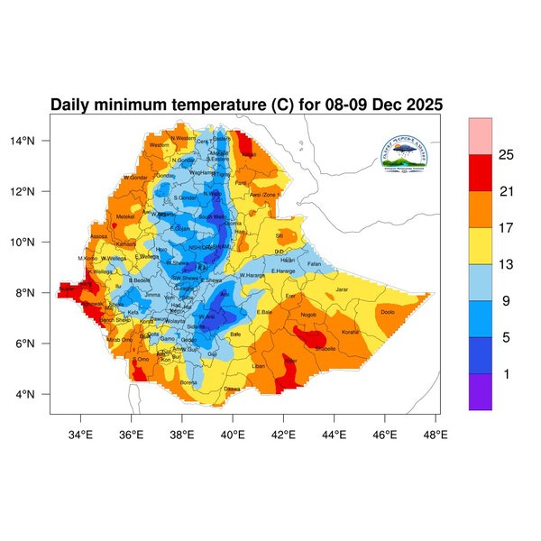 Light rainfall is expected over Southwest Ethiopia,South Ethiopia region, Sidama, western Oromoia.