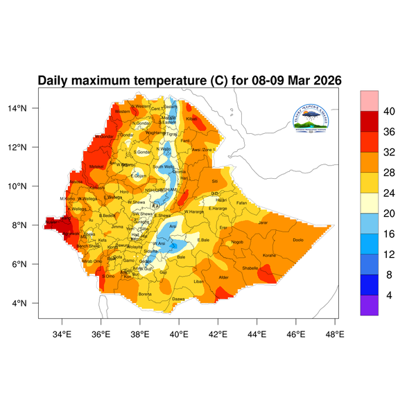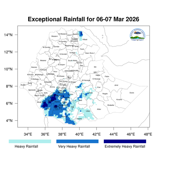 Light to moderate rainfall is expected over southern Ethiopia, Sidama, central Ethiopia, the southwestern region, central, southern, and eastern Oromia, eastern Amhara, eastern Tigray, and the southern Somali region.