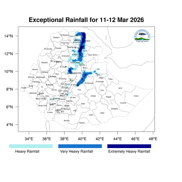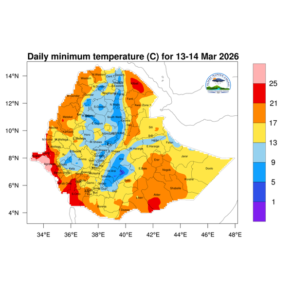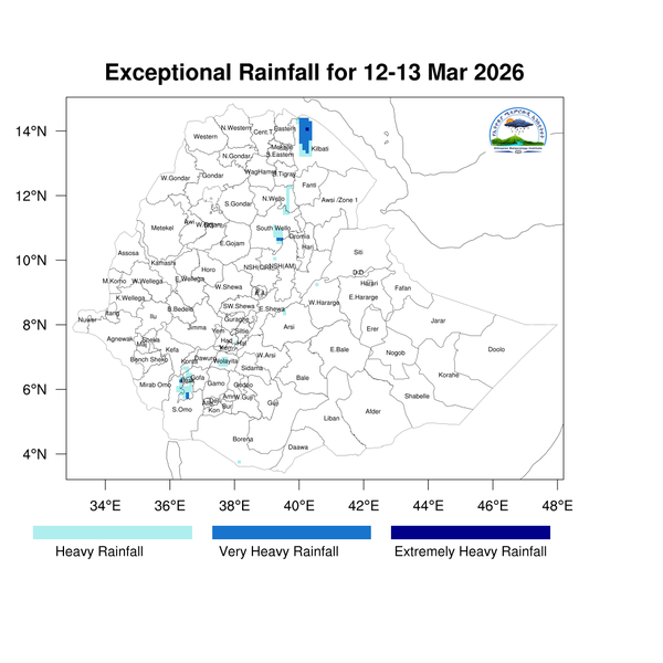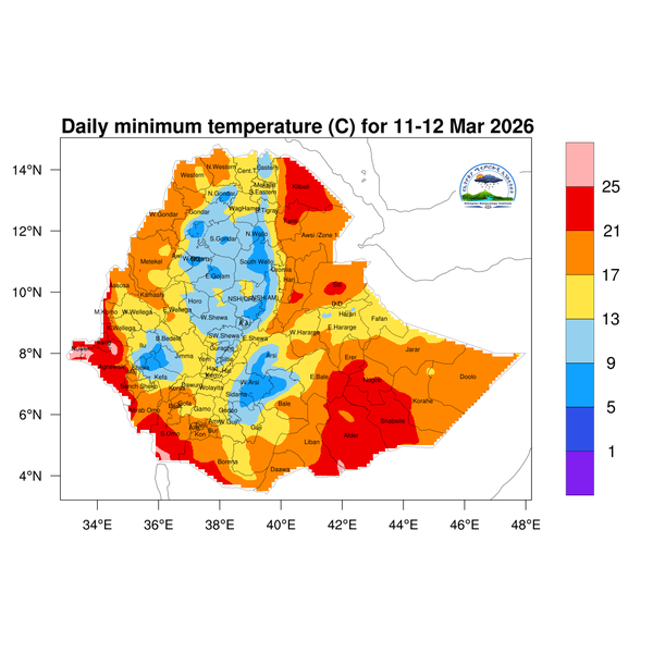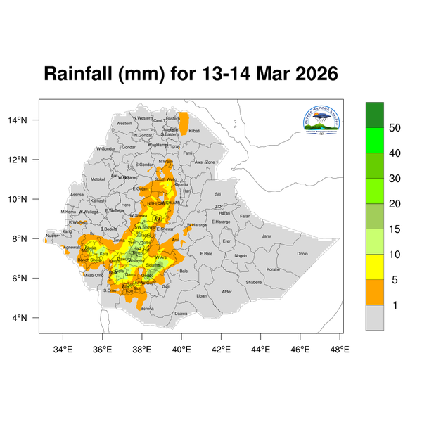 Light to heavy showers is anticipated over eastern, and southern Tigray, eastern Amhara, parts of the western, central, eastern, and southern highlands of Oromia, northern Somali, central Ethiopia, Sidama, and the Southern and Southwestern regions of Ethiopia.