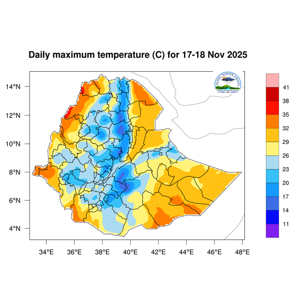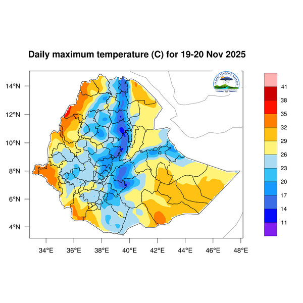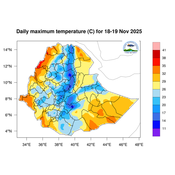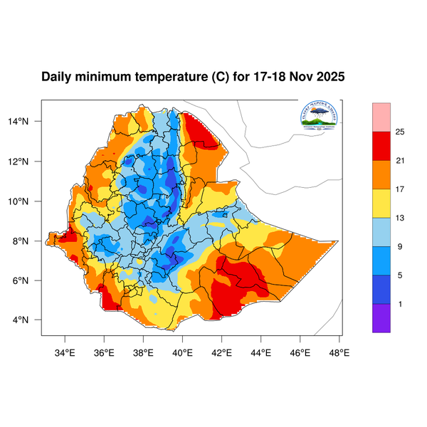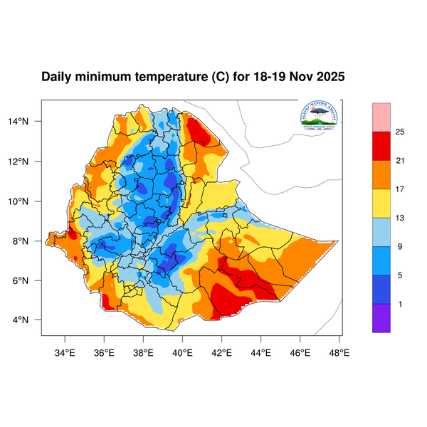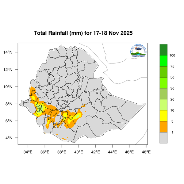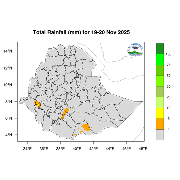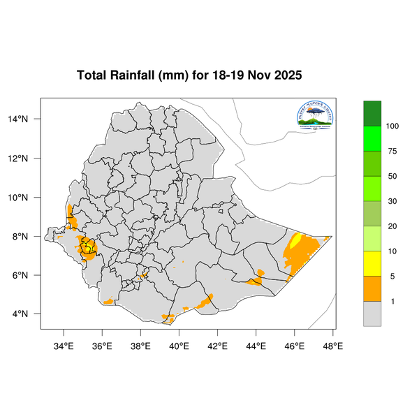 Light to moderate rainfall is expected in the regions of South Ethiopia, Southwest Ethiopia, Sidama, western and southern Oromia, and southern Somali