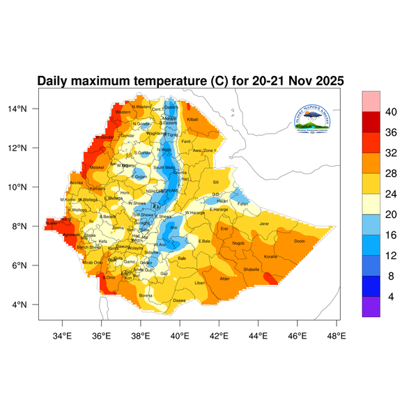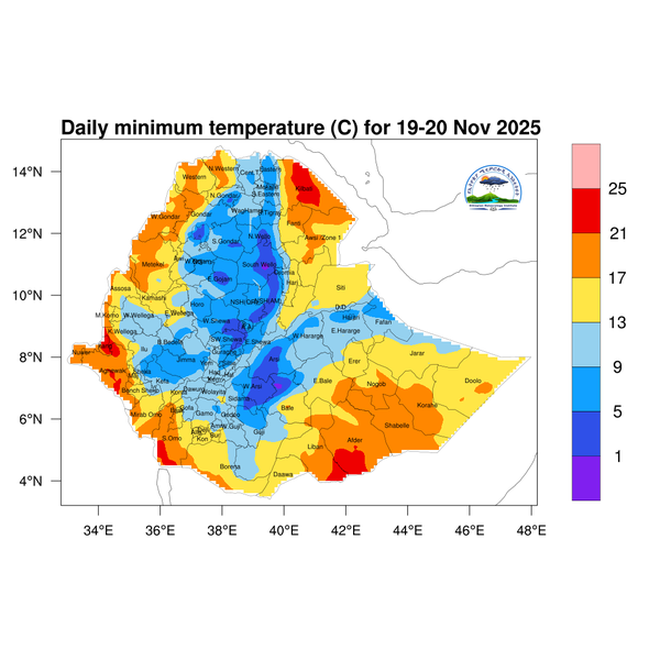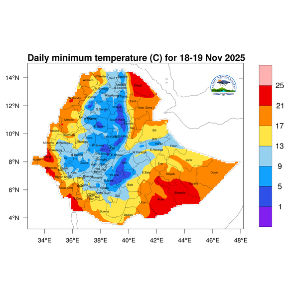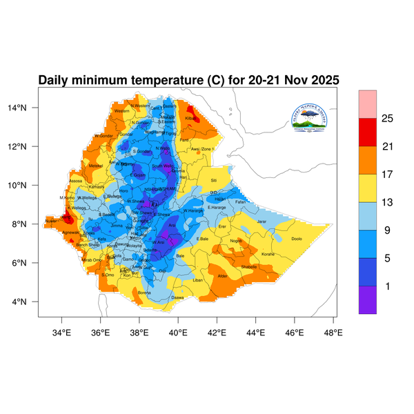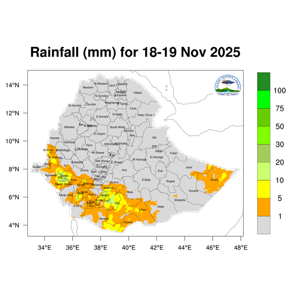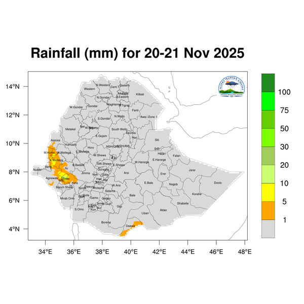 Light rainfall is expected over central Ethiopia, South Ethiopia, and Southwest Ethiopia regions, Sidama, eastern and southern Somali, western and southern Oromia.