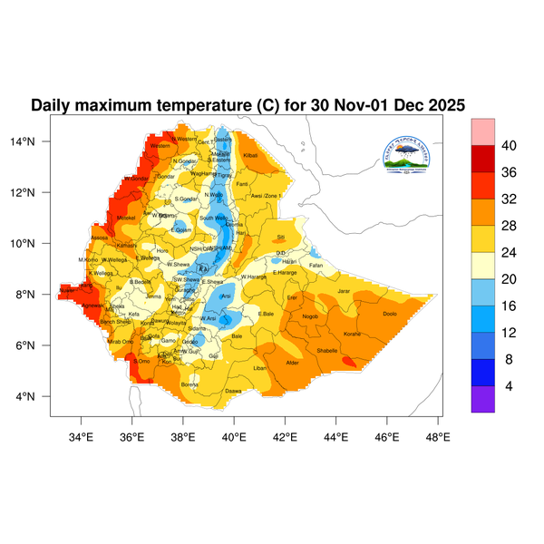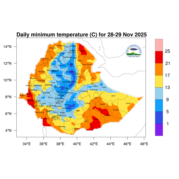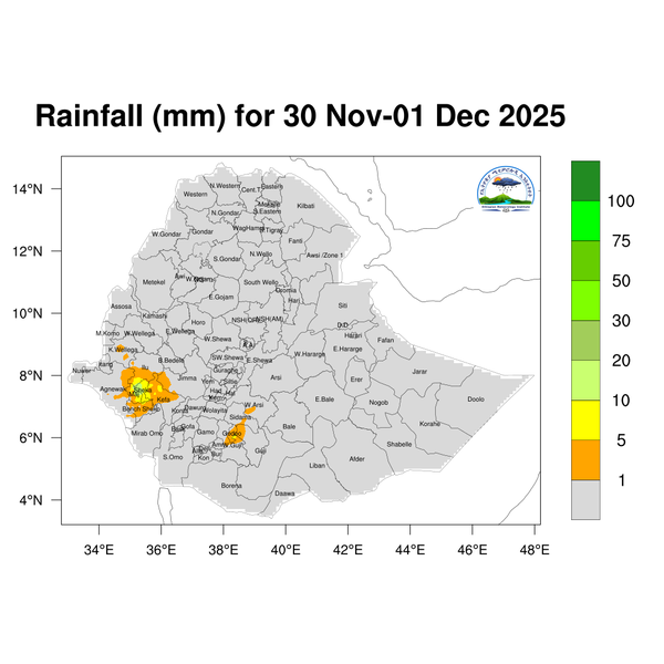 Light to moderate rainfall is expected over Southwest Ethiopia,South Ethiopia region, Sidama, western and south Oromia and northern Somali.