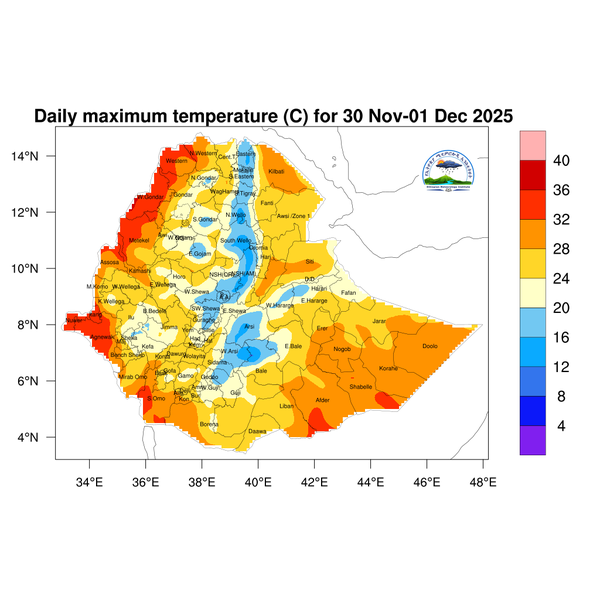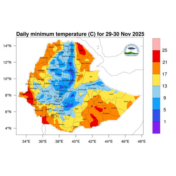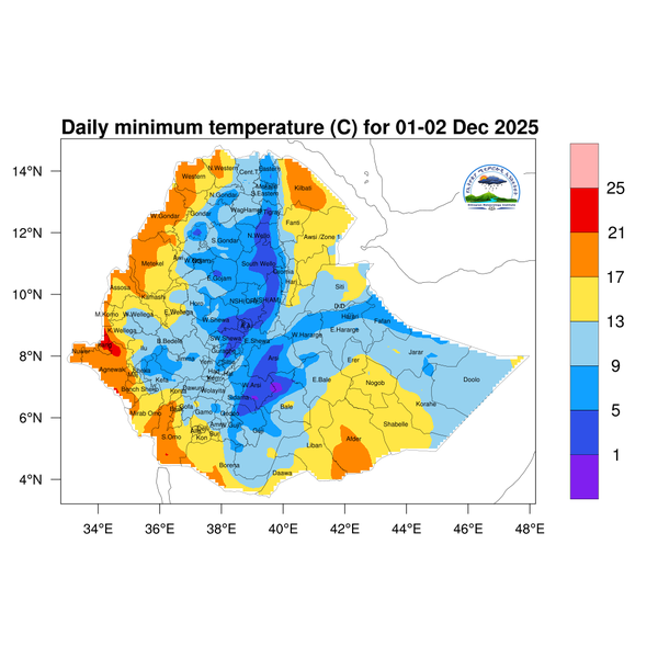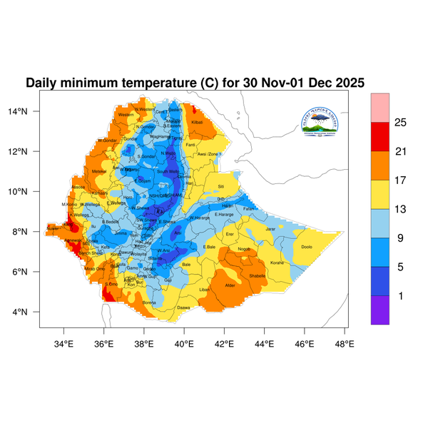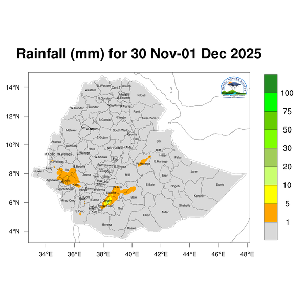 Light to moderate rainfall is expected over Southwest Ethiopia region, Sidama, and western Oromoia.
