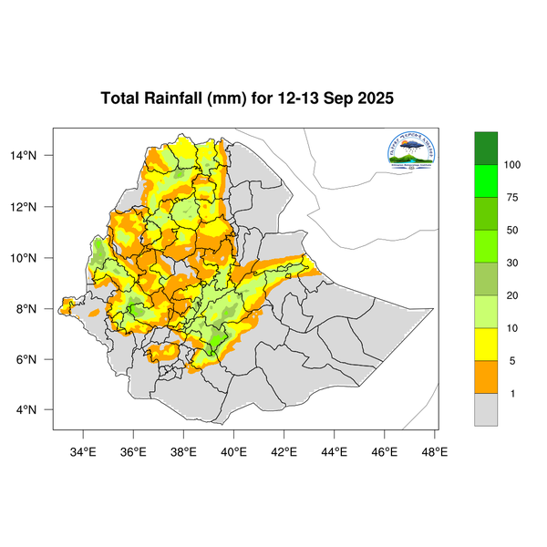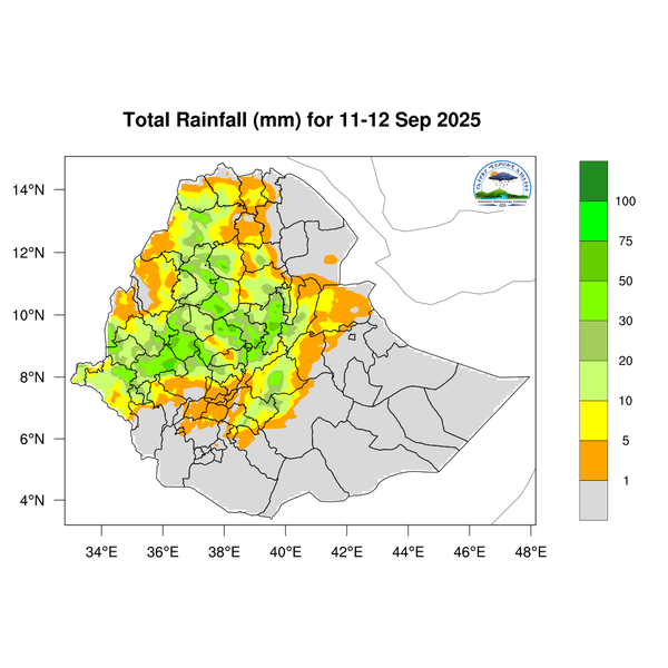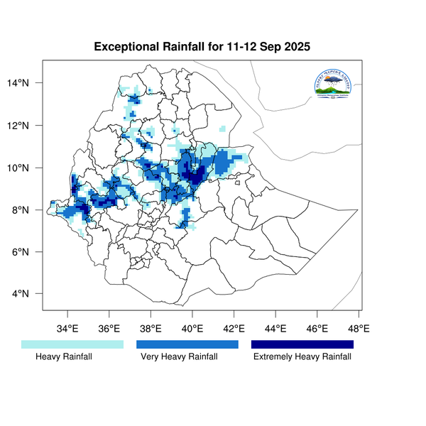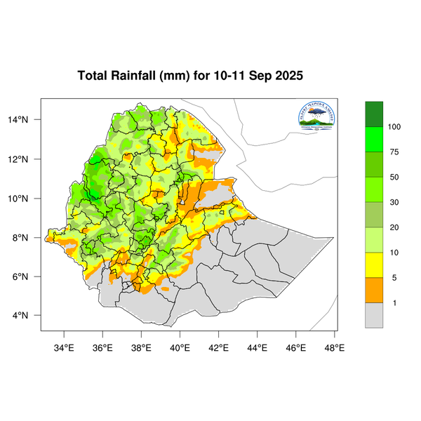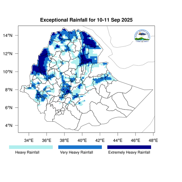 light to heavy rainfall is expected across Tigray, Amhara, Benishangul Gumuz, the western, central, eastern, and southern highlands of Oromia, southwestern Ethiopia, southern Ethiopia, central Ethiopia, Sidama, Harari, and northern Somali Regions