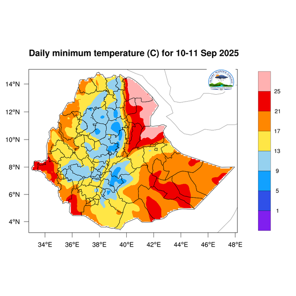 light to heavy rainfall is expected across Tigray, Amhara, Southern Afar, Benishangul Gumuz, Gambella, the western, central, eastern, and southern highlands of Oromia, southwestern Ethiopia, southern Ethiopia, central Ethiopia, Sidama, Harari, and northern Somali regions