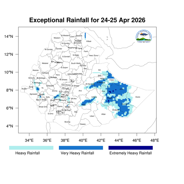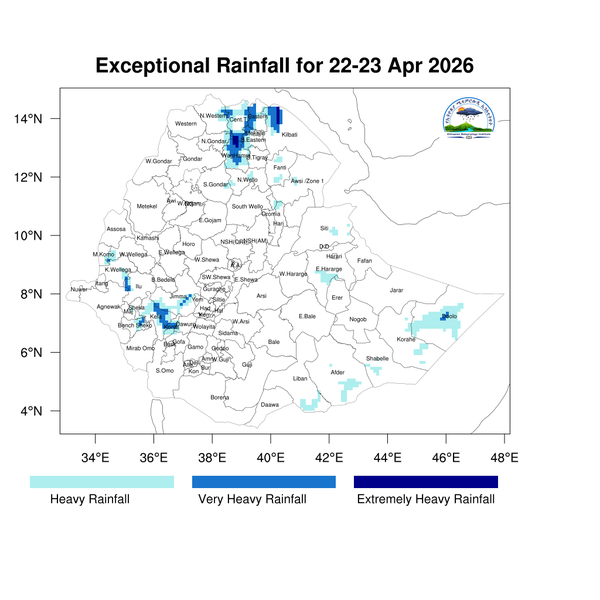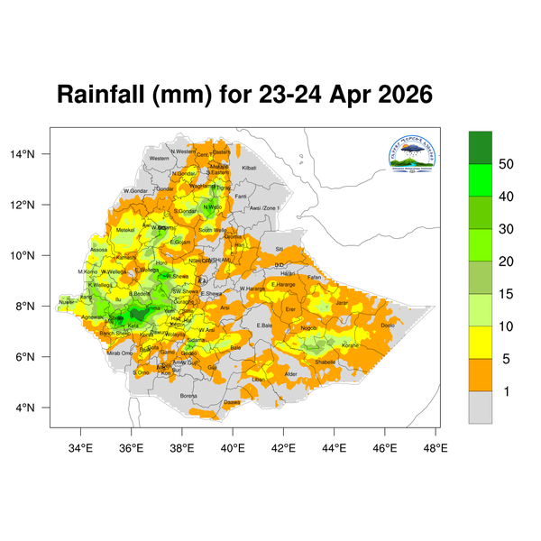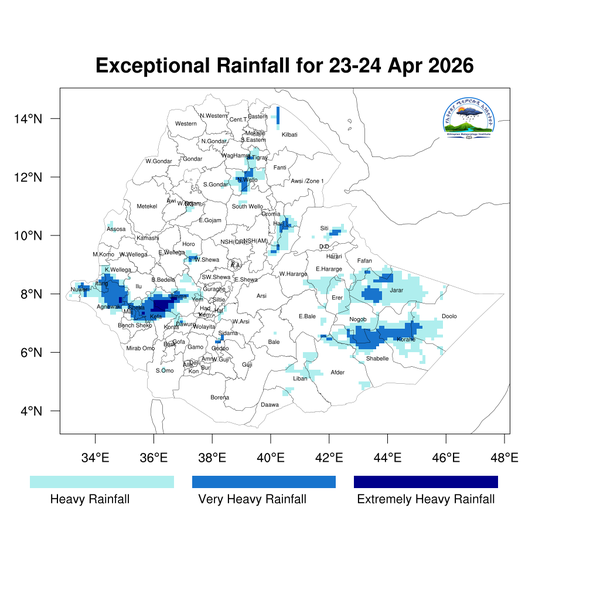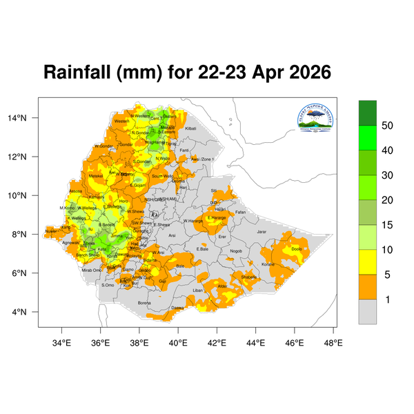 For the next day light to heavy rainfall is expected to develop across Tigray, Amhara, Benishangul-Gumuz, Oromia, and Gambella, as well as the Central Ethiopia, Southwest Ethiopia, Sidama, South Ethiopia, Somali, and southern Afar regions.