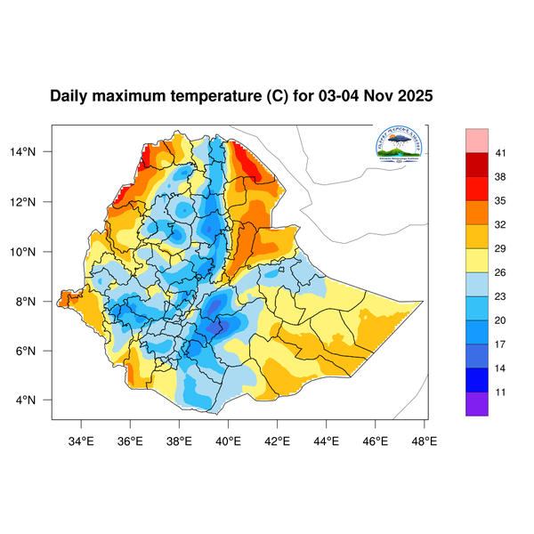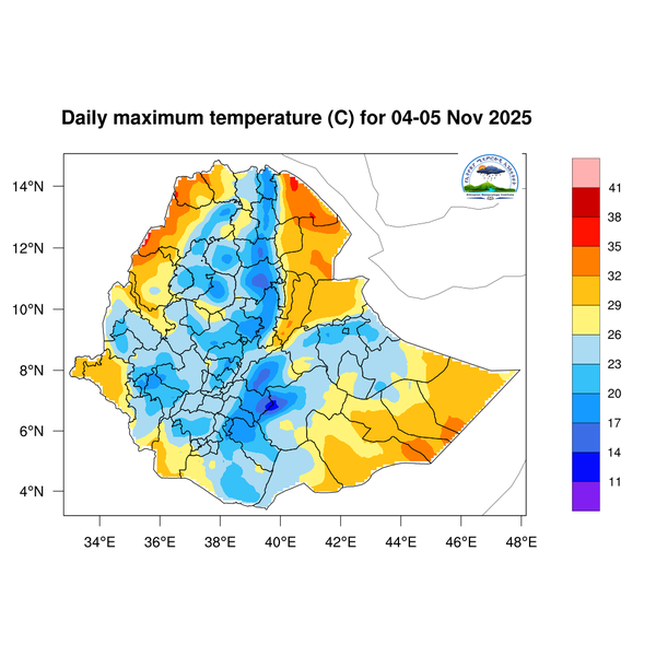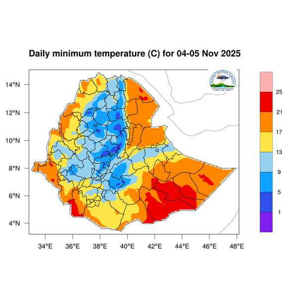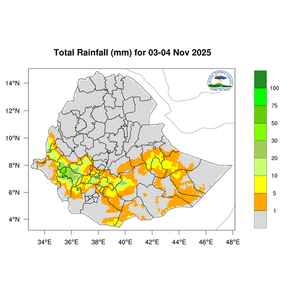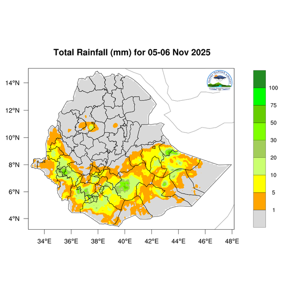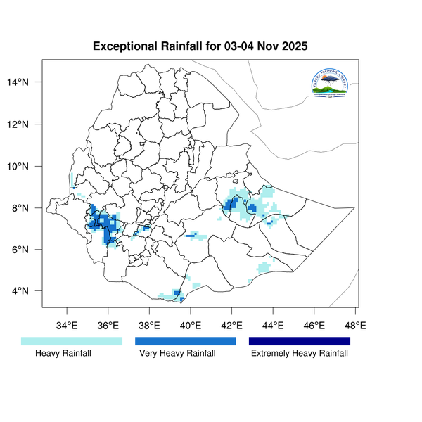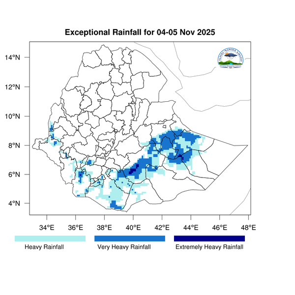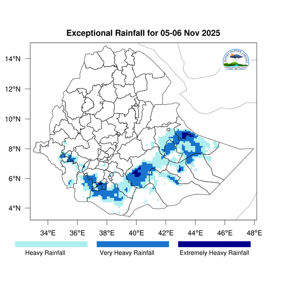 Heavy and extremely heavy rainfall, classified in the top 1–10% of rainfall amounts, is anticipated in southern Oromia, southern Ethiopia, and southwestern Ethiopia, as well as in Sidama and the Somali region