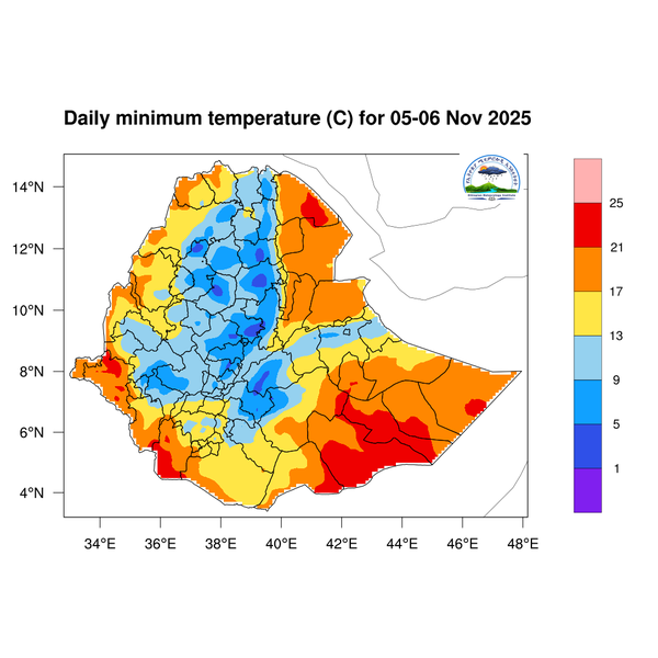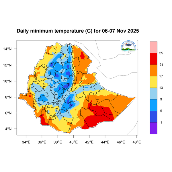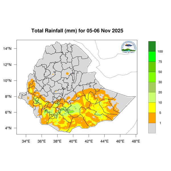 Light to moderate rainfall is expected over South Ethiopia, Southwest Ethiopia, central Ethiopia regions, western and southern Somali, Sidama, western and Southern Oromia.