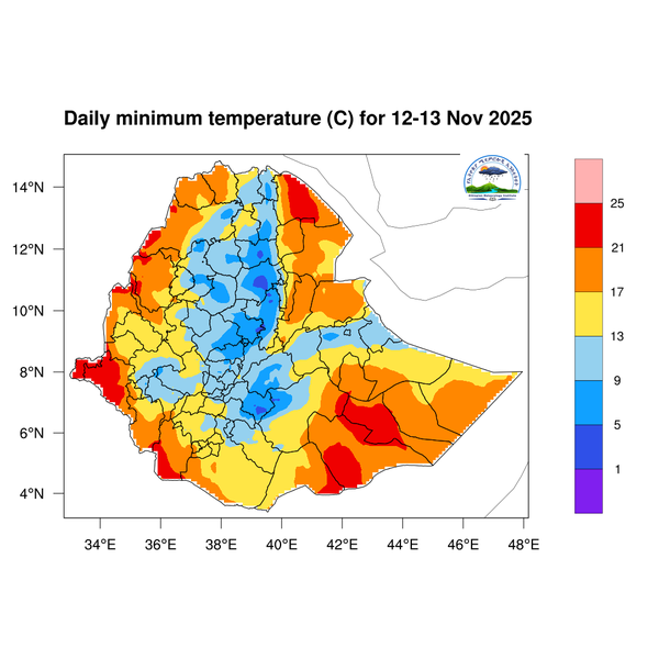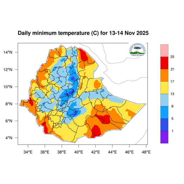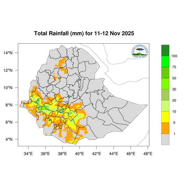 Light to moderate rainfall is expected over western Amhara, central Ethiopia, South Ethiopia, Southwest Ethiopia regions, Gambella, Sidama, western and southern Oromia