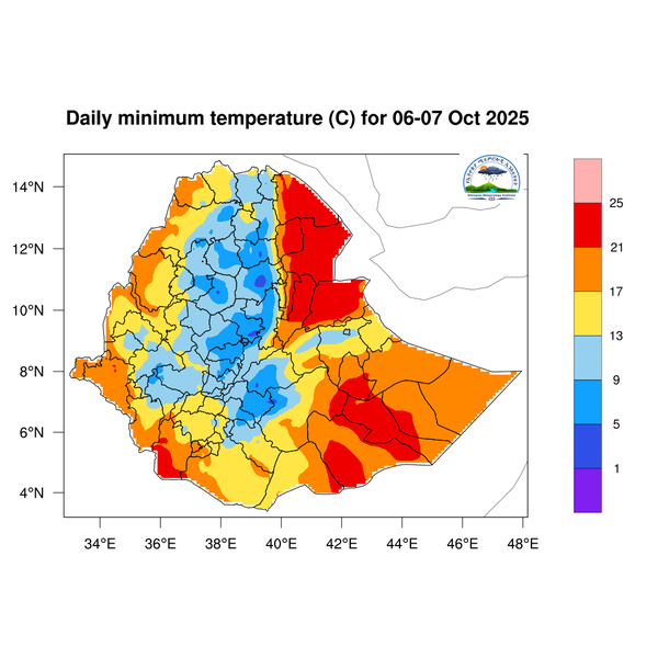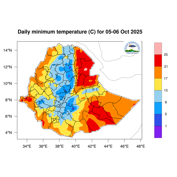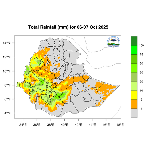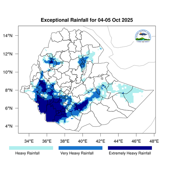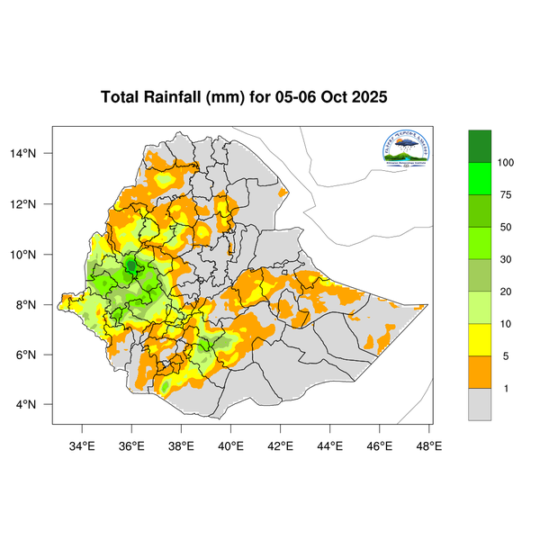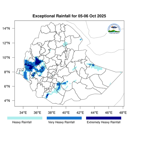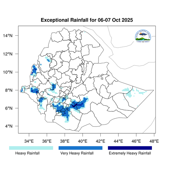 Light to heavy rainfall is anticipated over western Tigray, Amhara, Oromia, Benishangul Gumuz, Gambella, Southwest Ethiopia, central Ethiopia, and southern Ethiopia regions, southern Afar, northern Somali and Sidama for the next three days