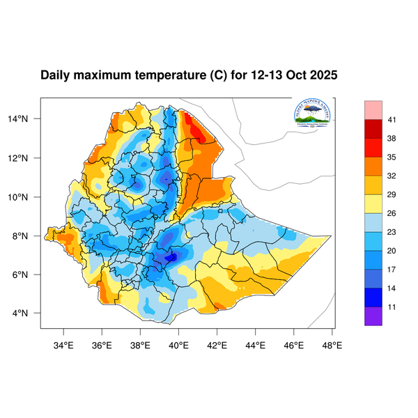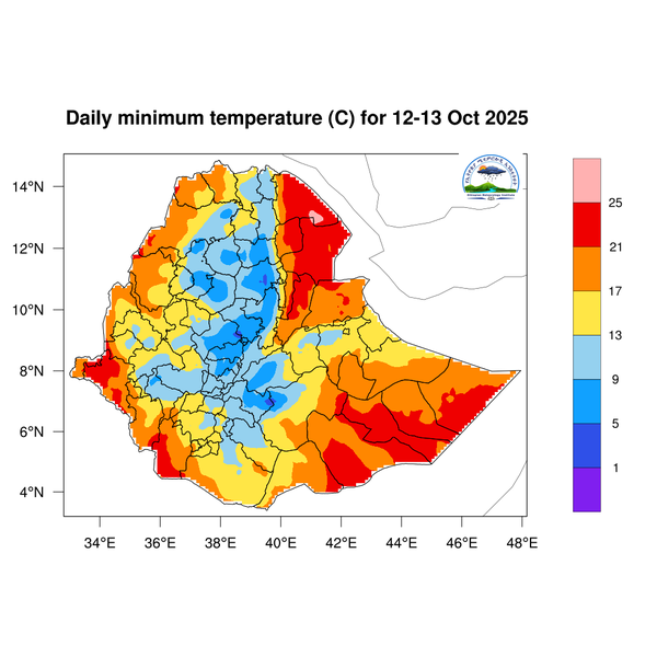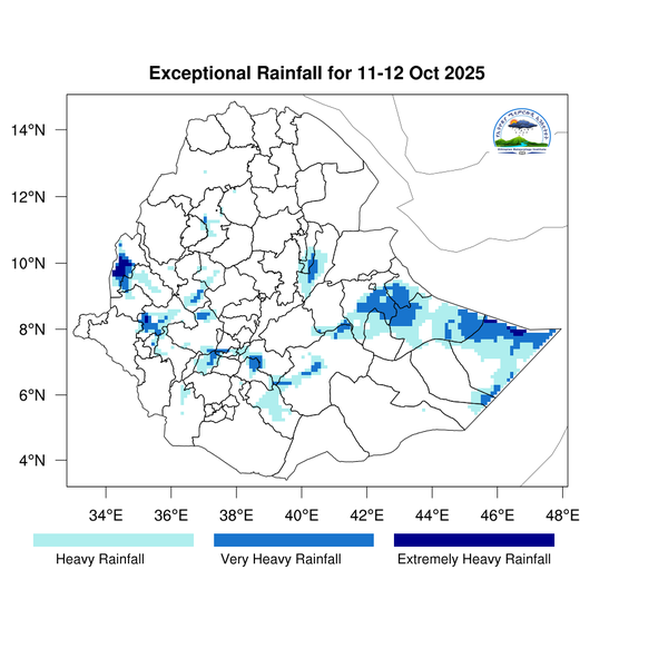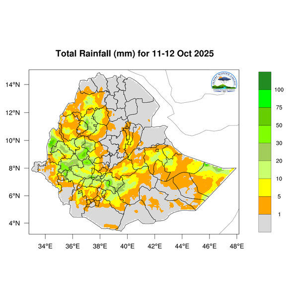 Light to moderate rainfall is anticipated over western and central Tigray, western and eastern Amhara, western, central, eastern, and southern Oromia, Benishangul Gumuz, Gambella, Southwest Ethiopia, central Ethiopia, south Ethiopia, Somali, and Sidama.