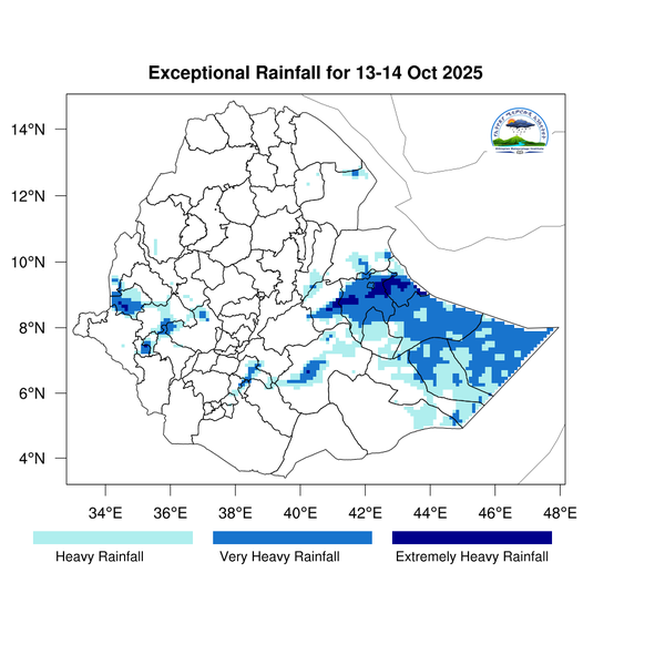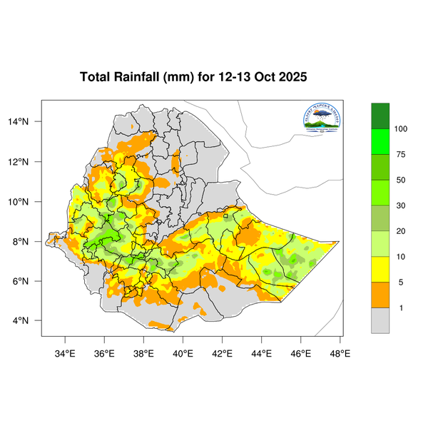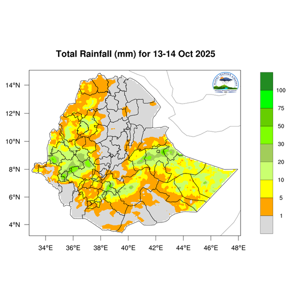 Light to moderate rainfall is anticipated over, western and eastern Amhara, western, central, eastern, and southern Oromia, Benishangul Gumuz, Gambella, Southwest Ethiopia, central Ethiopia, south Ethiopia, Somali, and Sidama.