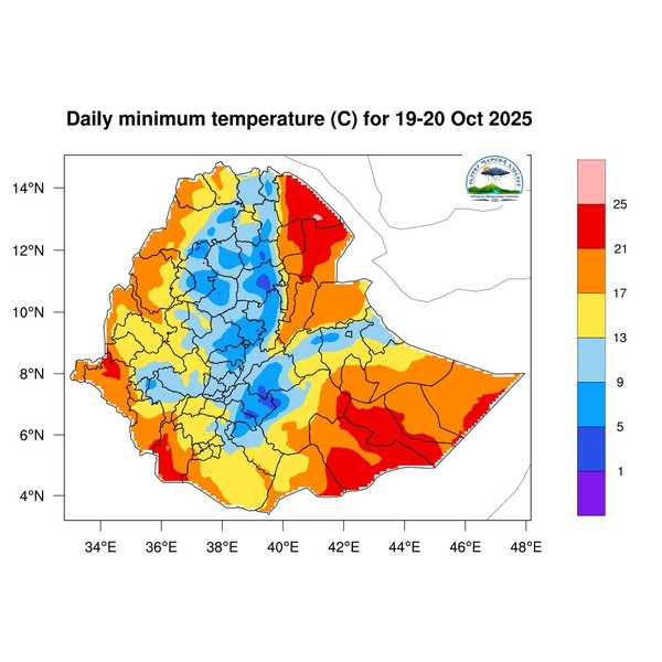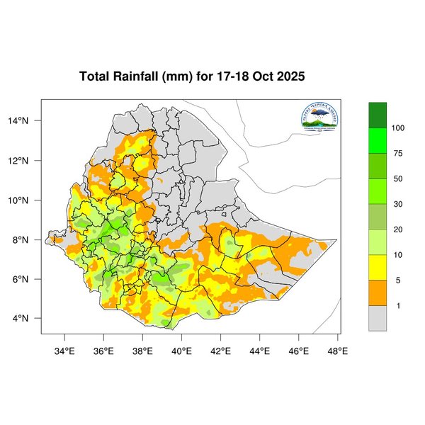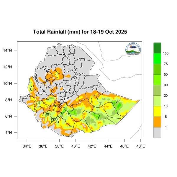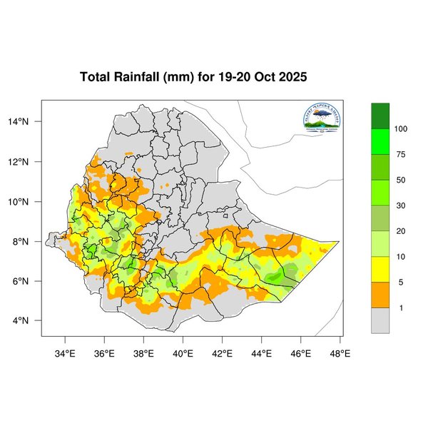 Light to moderate rainfall is expected over central Amhara, central, western, and southern Oromia, Gambella, southwest Ethiopia, central Ethiopia, southern Ethiopia, Benishangul Gumuz, Somali, and Sidama.
