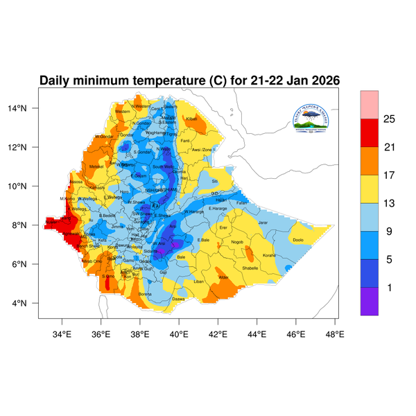 The daily minimum temperature is expected to be below 5 degrees Celsius across the central, and southern highlands of Oromia, eastern Amhara.In line with this, colder weather is anticipated across these areas, especially in the early morning and at night.