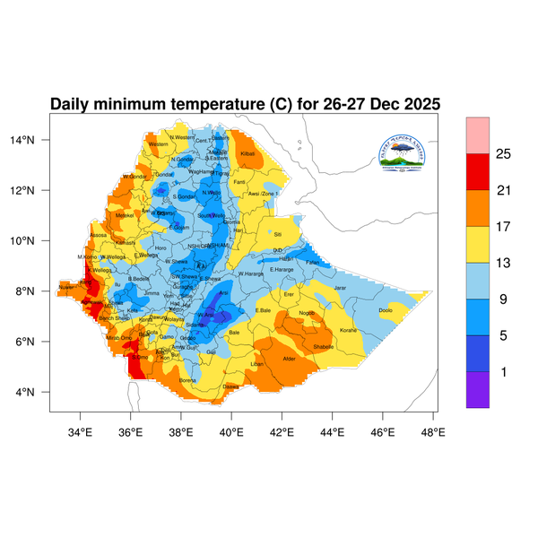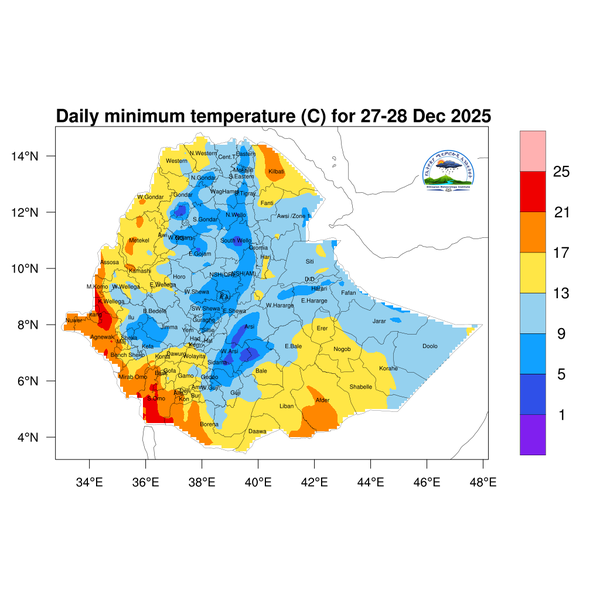 For the coming three days, the daily minimum temperature is expected to be below 5 degree Celsius across southern highlands of Oromia, and eastern Amhara.