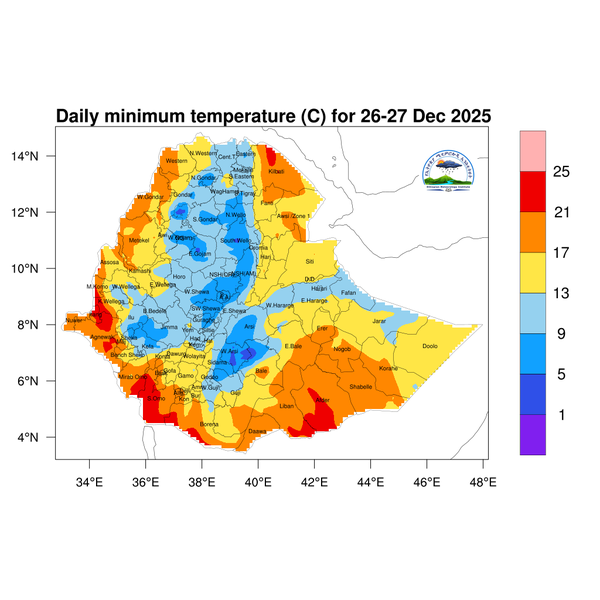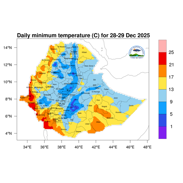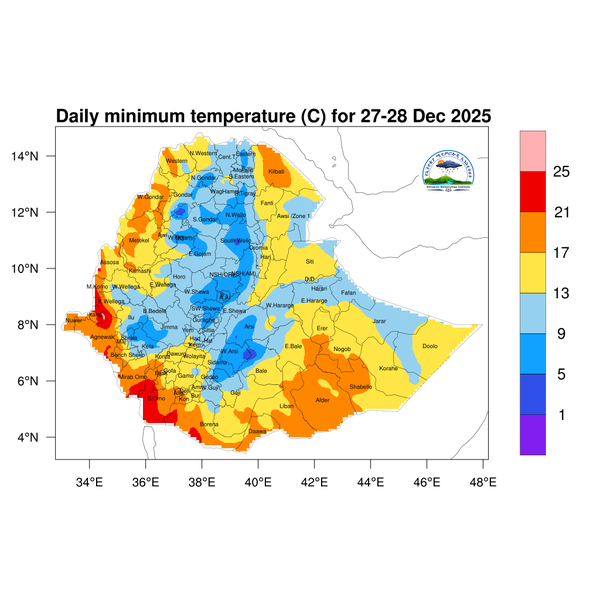 For the coming three days, the daily minimum temperature is expected to be below 5 degree Celsius across eastern Amhara and southern highlands of Oromia.