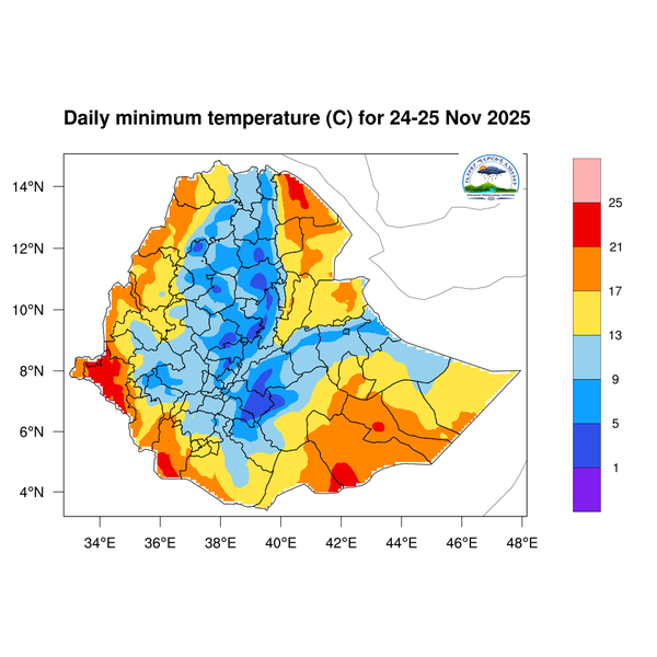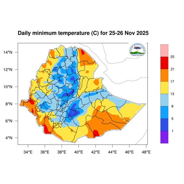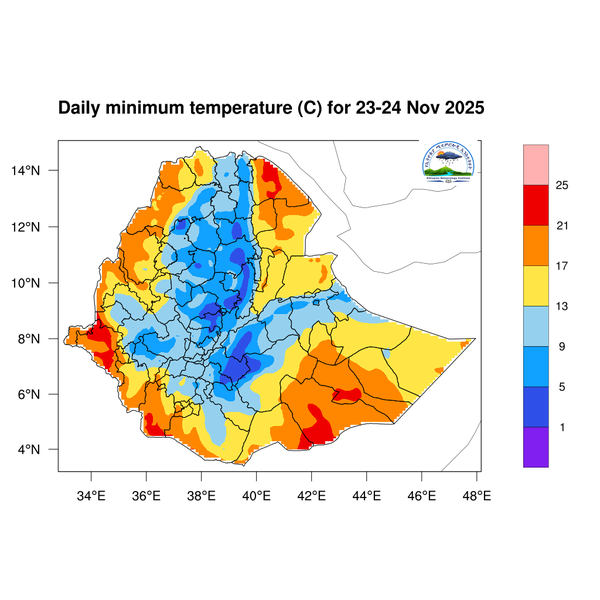 The daily minimum temperature is expected to fall below 5 degrees Celsius in central and eastern Amhara, as well as in the central and southern highlands of Oromia. In association with this, the early morning and nighttime coldness will continue to increase in these areas of the country.